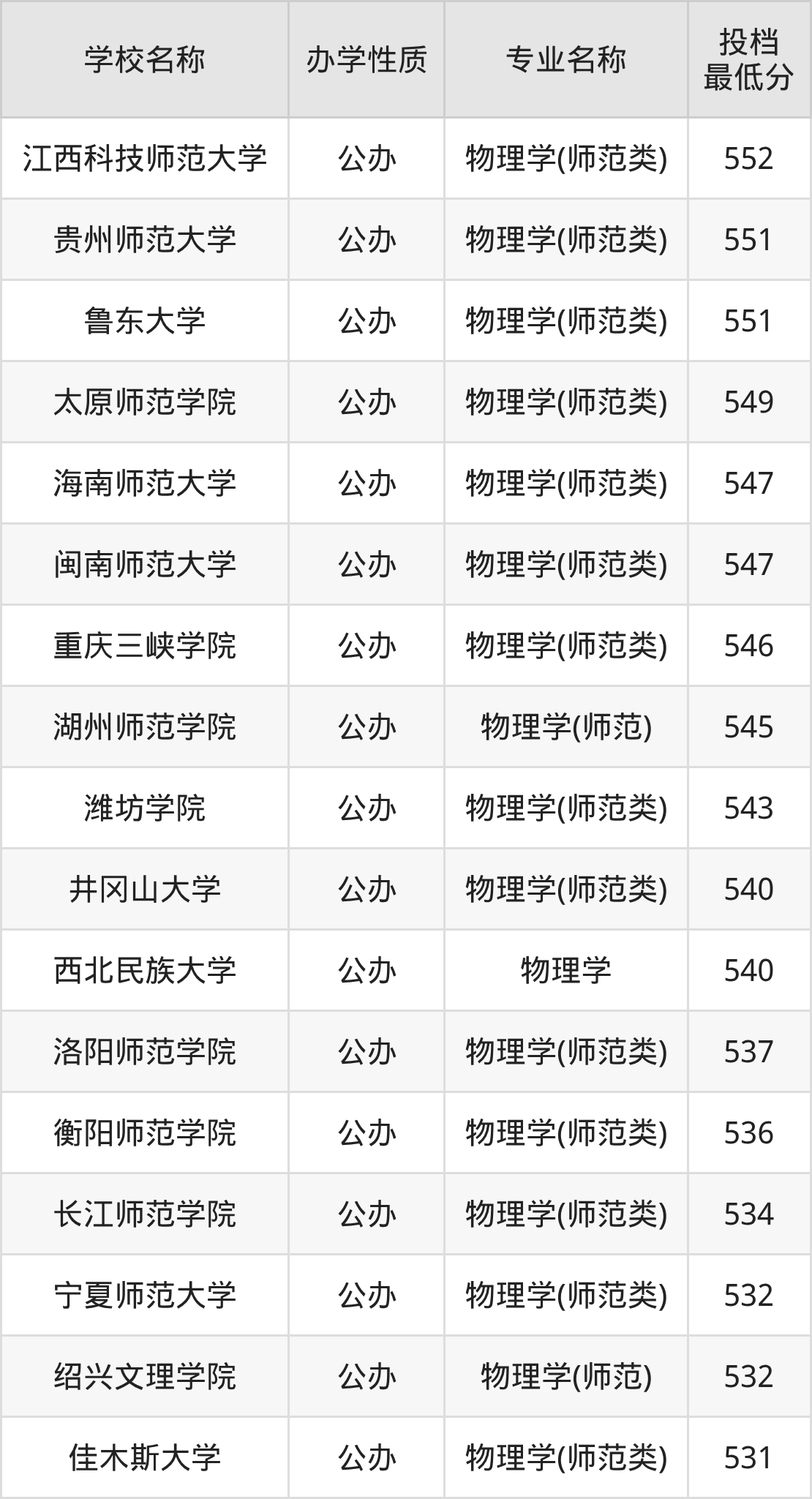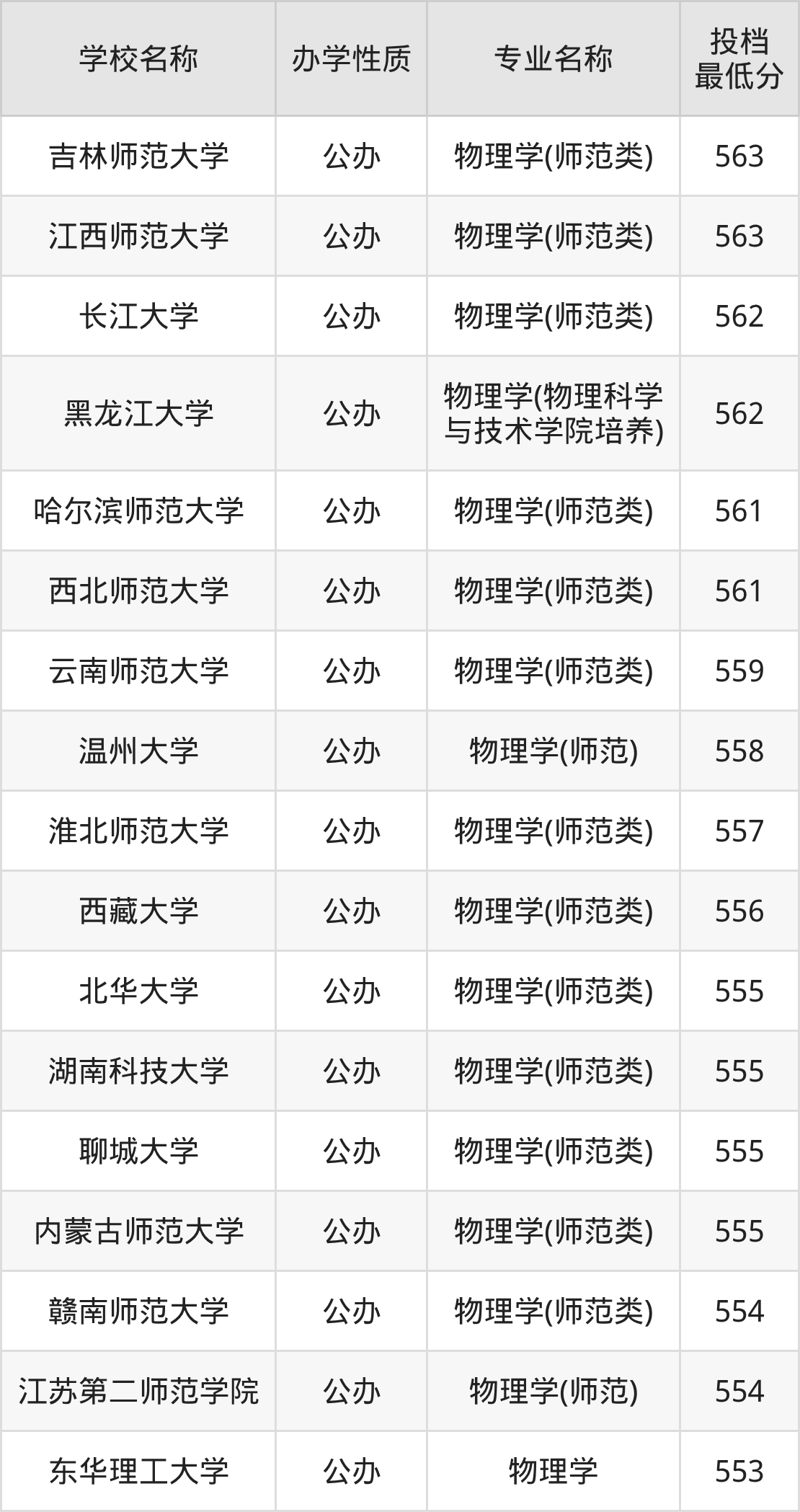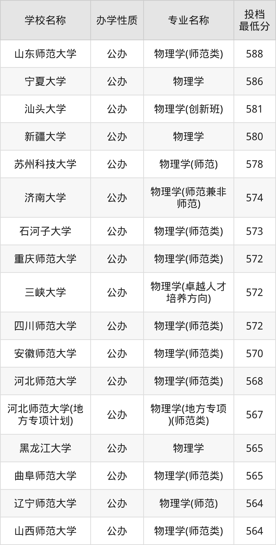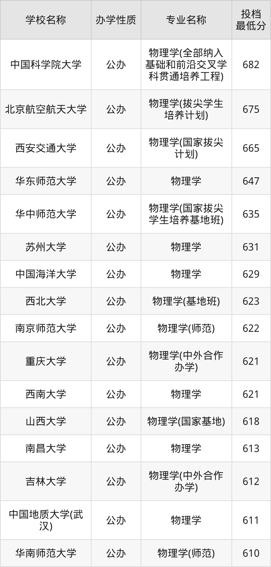 下面是2025年全国所有大学物理学专业录取分数线一览表(按照分数线从高到低排名):