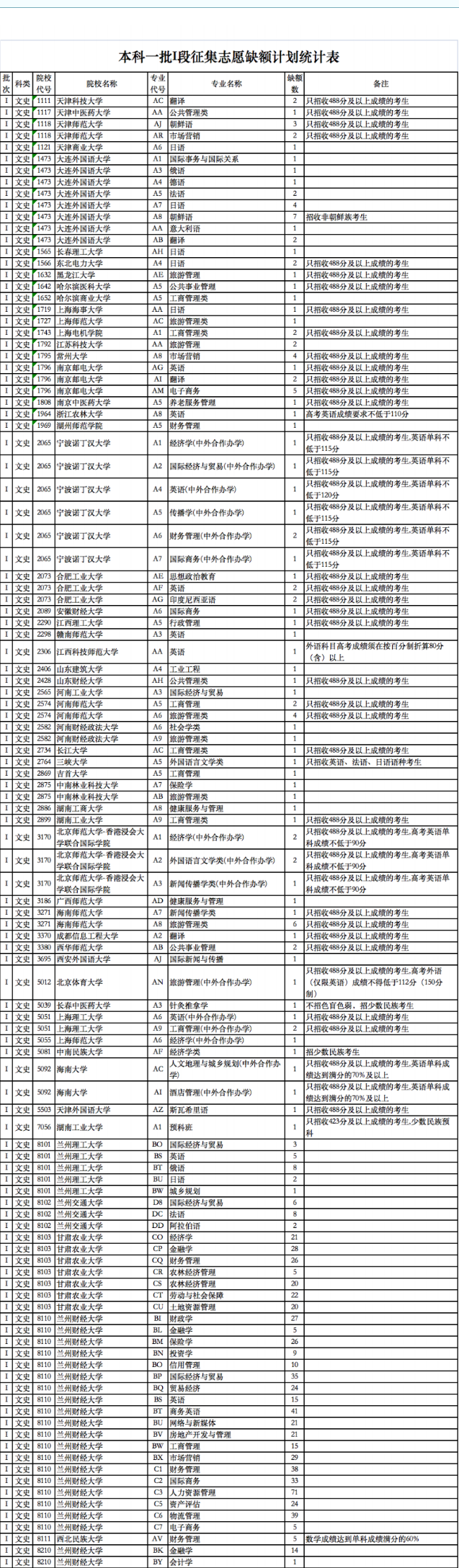 | 文史 | 5011 | 国际关系学院 | A5 | 传播学 | 1 | 国家专项。政治面貌、身体等报考条件详见招生章程。只招男生。 |