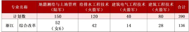 2、浙江建设职业技术学院招生专业有地籍测绘与土地管理招生52人,招收单位是陆军;给排水工程技术招生42人,招收单位是火箭军;建筑电气工程技术技术招生14人,招收单位是火箭军;建筑工程技术招生28人,招收单位是火箭军。