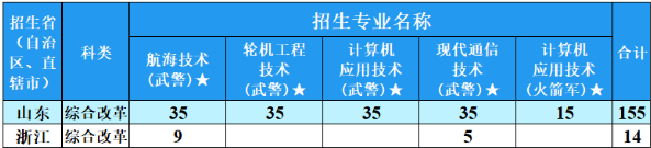 3、威海职业学院招生专业有航海技术,招生9人,招收单位为武警;现代通信技术招生5人,招收单位为武警。