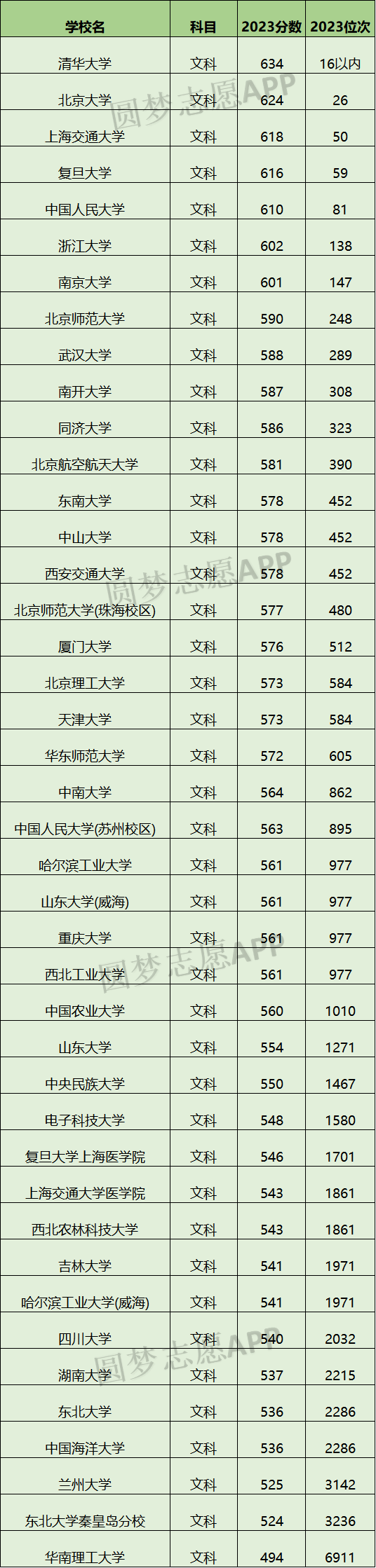 全国所有985大学在山西的理科录取分数区间为561分~679分,对应全省最低位次区间为12487~55,文科录取分数区间为494分~634分,对应全省最低位次区间为6911~16。