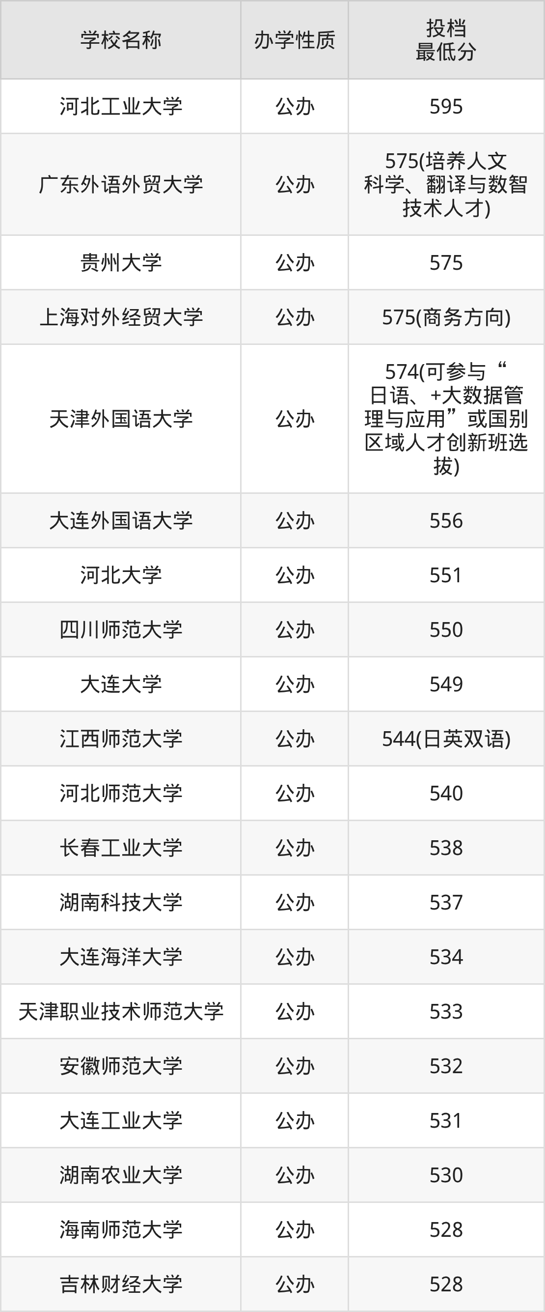 下面是2025年全国所有大学日语专业录取分数线一览表(按照分数线从高到低排名):