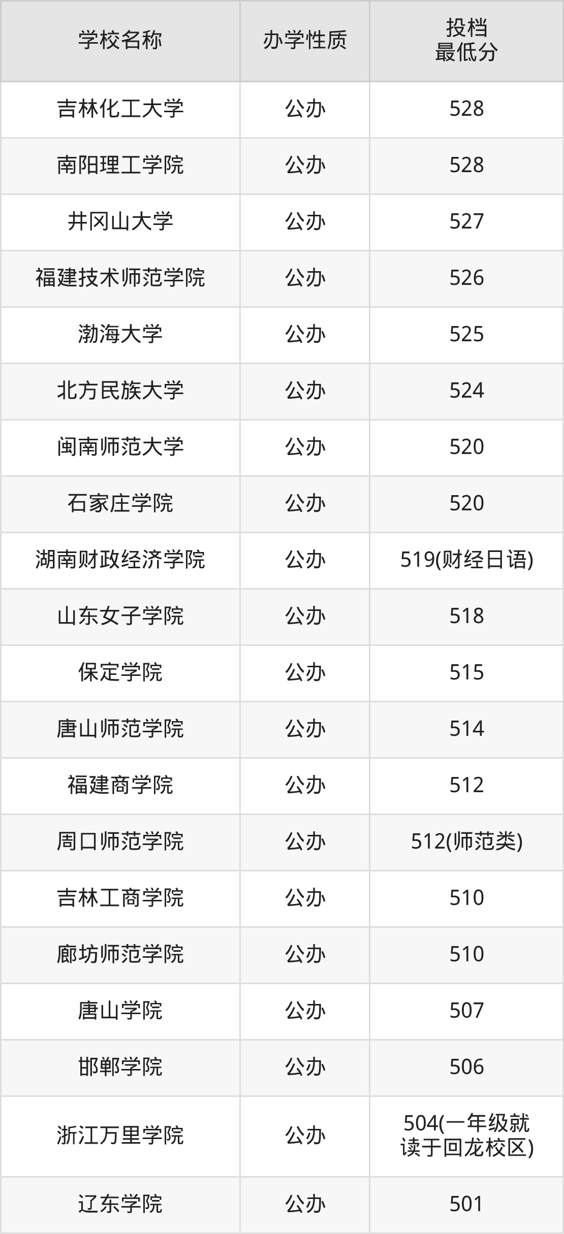 500分左右的日语大学:辽东学院501分、浙江万里学院504分、邯郸学院506分、唐山学院507分;
