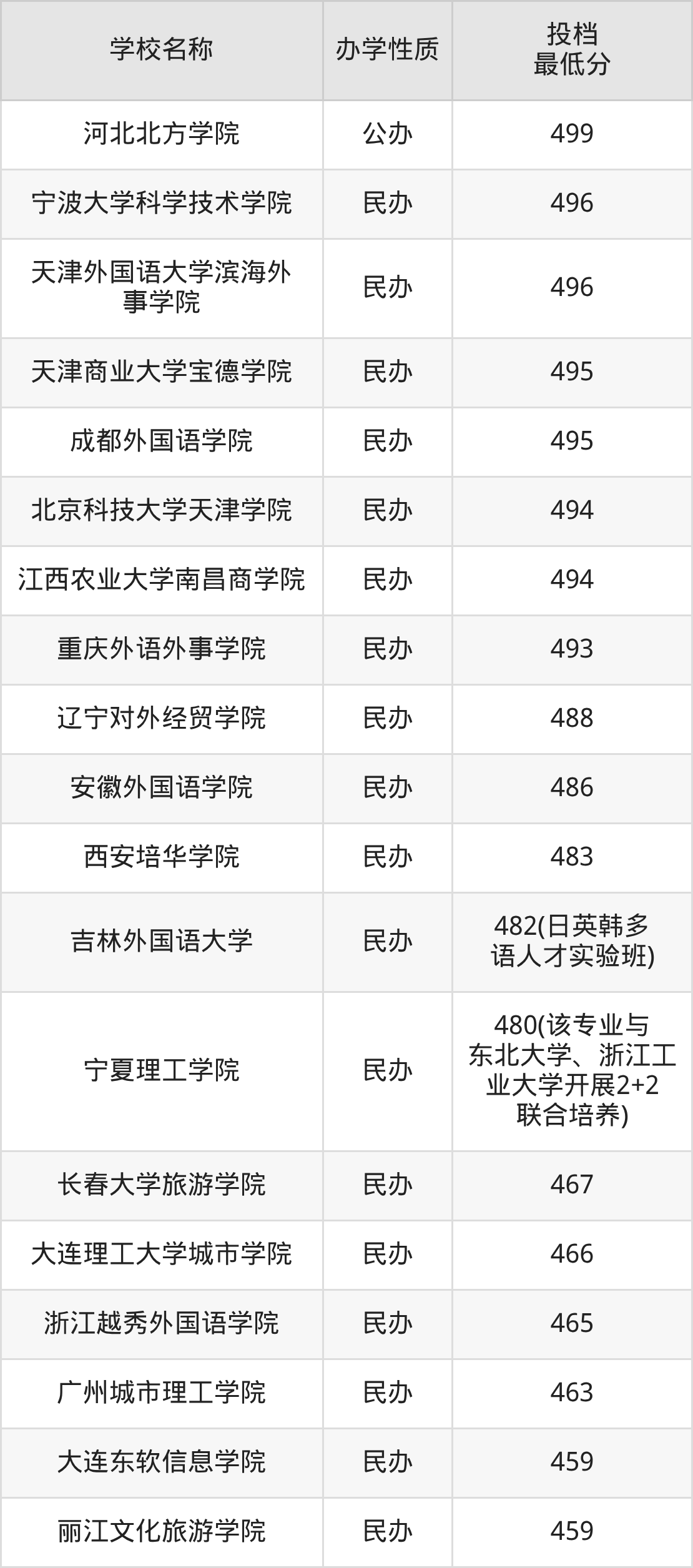 2025年日语专业最低录取分数线是459分,超本科分数线(426分)33分。也就是说想报考日语专业的同学,至少得超过本科线33分及以上。日语专业最低分的大学是丽江文化旅游学院,不过该校属于民办。