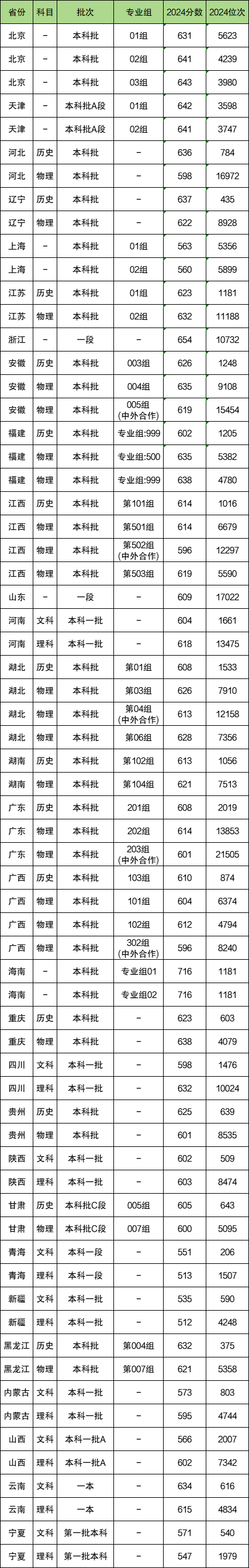 以下是中央财经大学2024年在全国各省的最低录取分数: