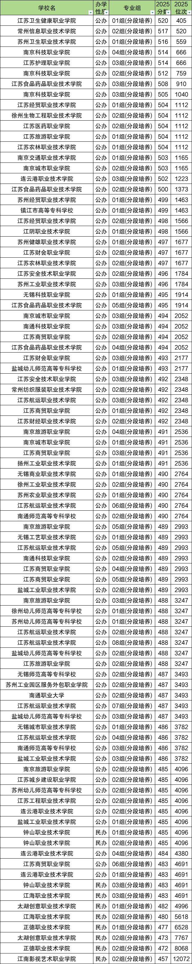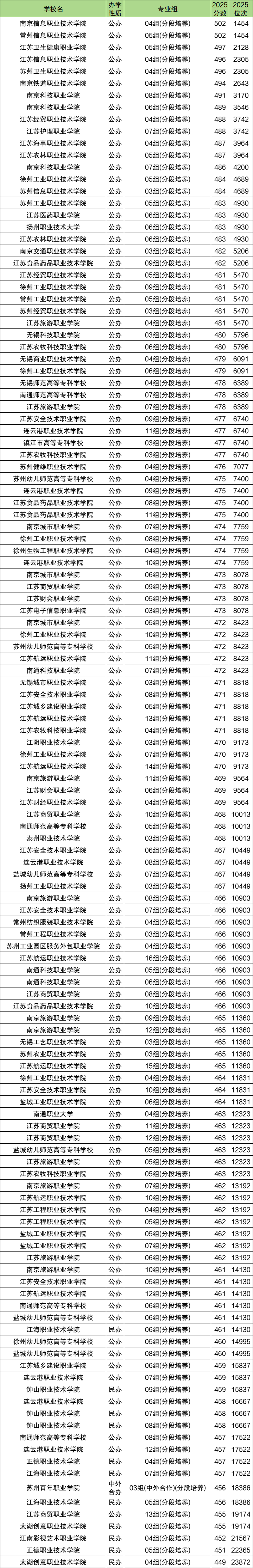 (4)江苏信息职业技术学院:04组,496分;
