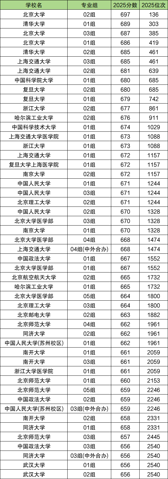 全国本科各大学在北京高考录取分数线前50强: