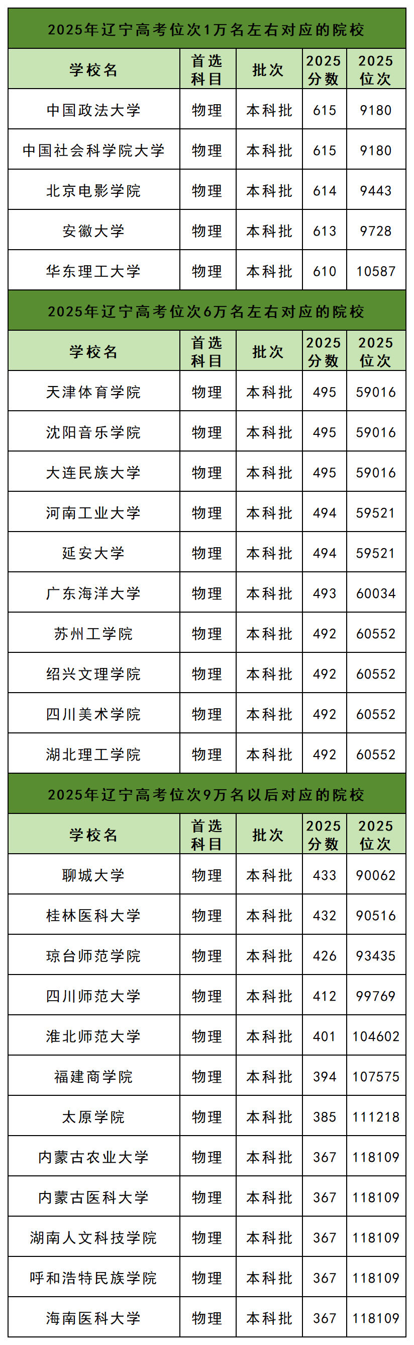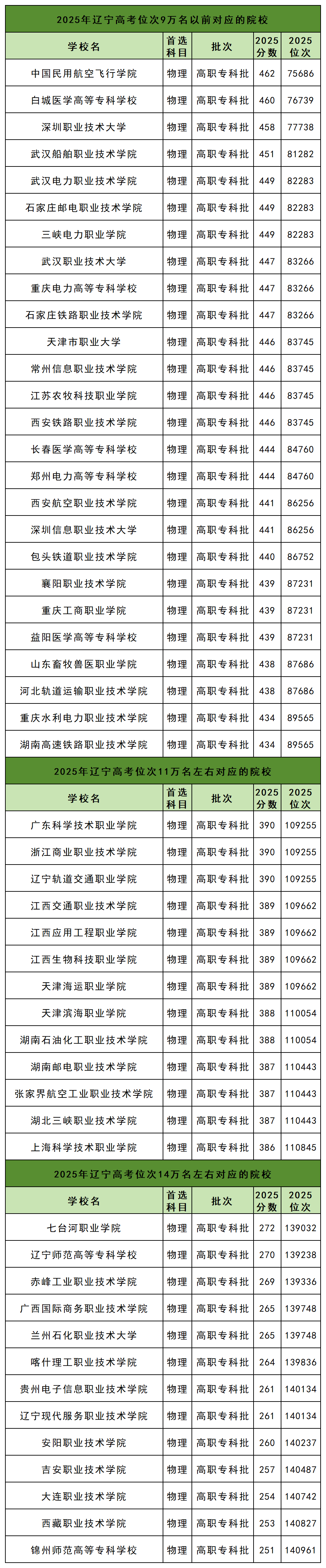 温馨提示:本文以2025年全国大学在辽宁物理类的招录数据为例,展示不同位次排名对应的公办大学名单,以供2026届考生报考参考。