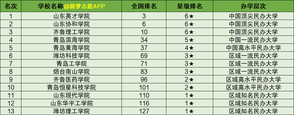 1、校友会2020山东省民办大学排名