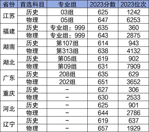 | 省份 | 科目 | 2023分数 | 2023位次 |