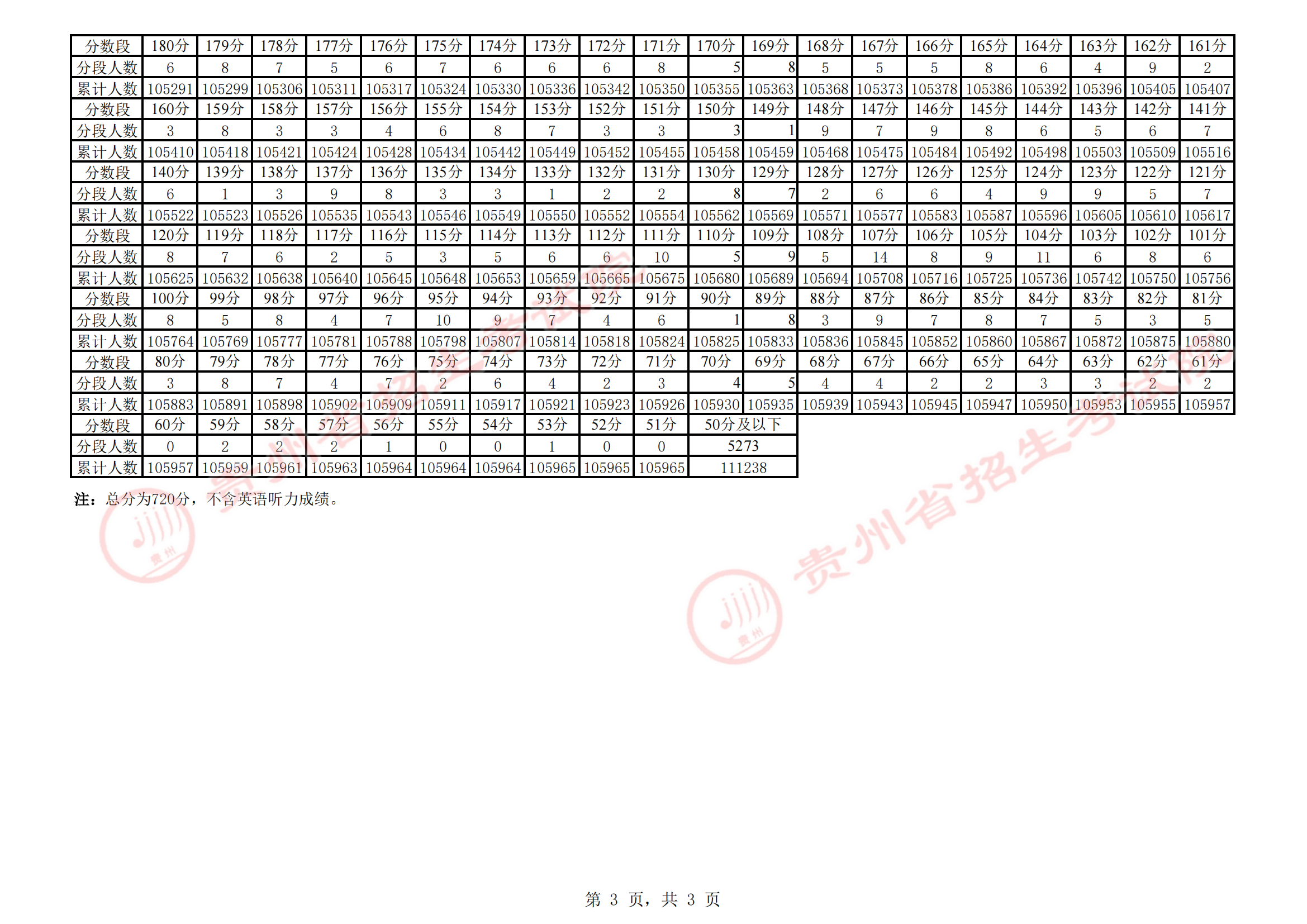 目前,官方公布的一分一段表来看,贵州省参加省适应性考试的学生总人数是理科208069,文科总人数111238。