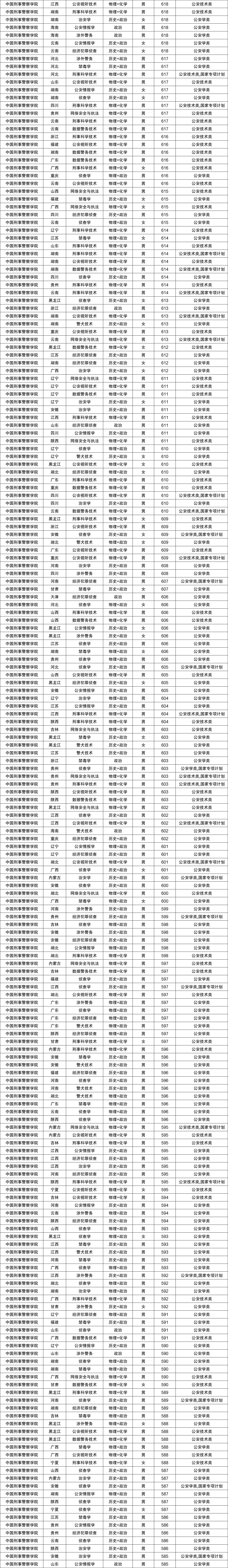 一、中国刑事警察学院2025年录取分数线
