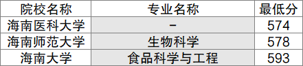 以下是2024年海南地方专项计划高校在海南的最低录取分数线: