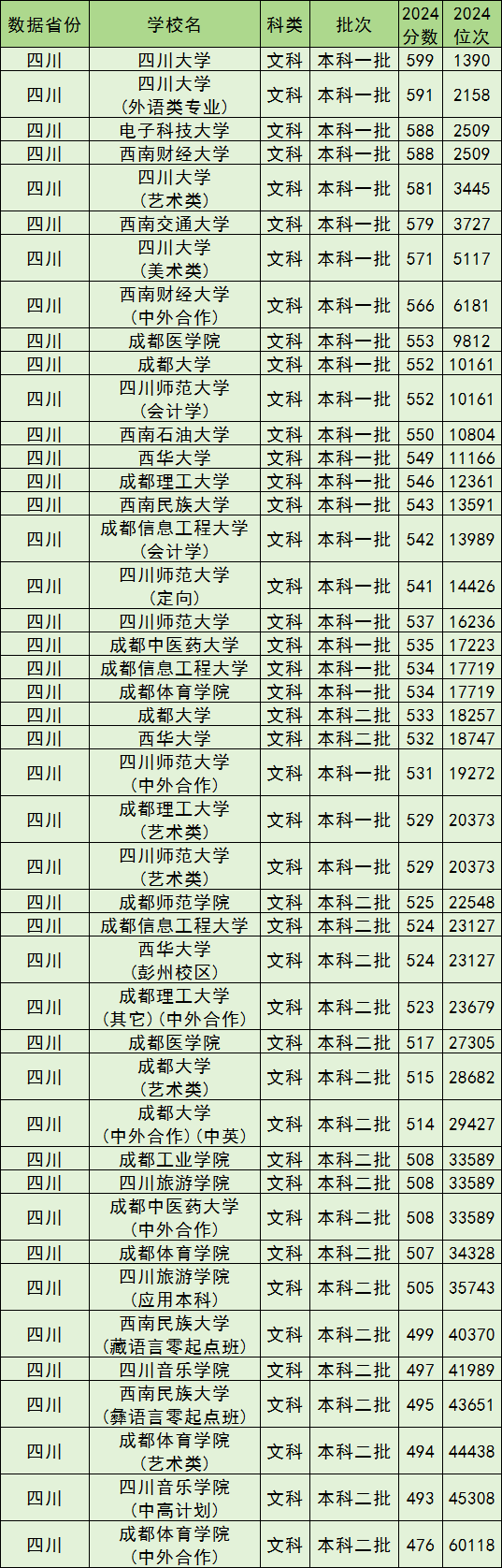 按照成都市所有公办本科院校2024年在四川省内录取分数线高低排名,为大家整理以下内容。