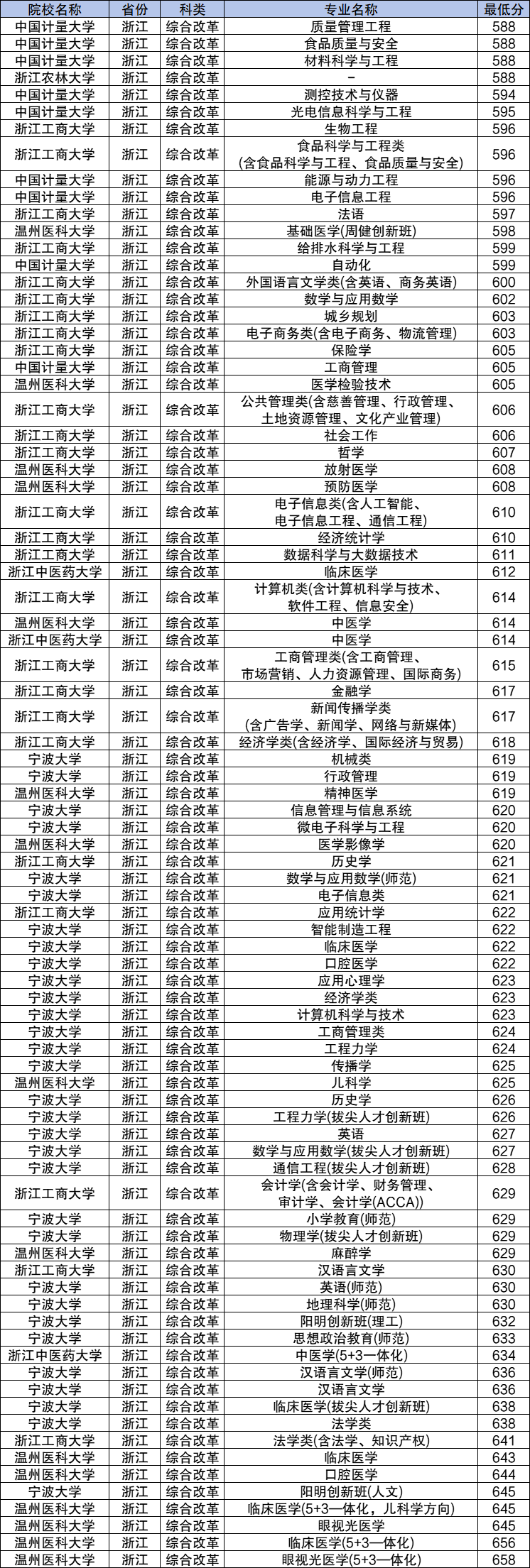 以浙江中医药大学为例,各个专业最低分数线如下: